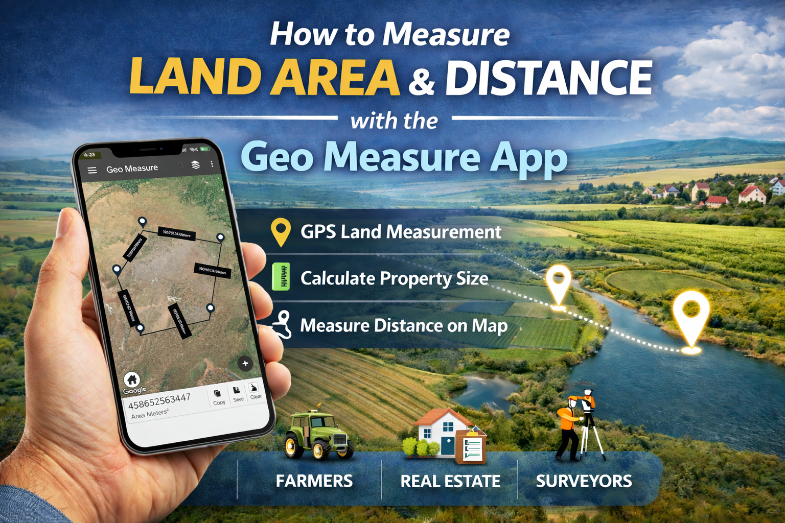 Measuring land area and distance used to require expensive equipment and professional survey tools. Today, you can do it directly from your smartphone using the Geo Measure App a powerful GPS land measurement tool designed for farmers, surveyors, real estate professionals, and property owners.