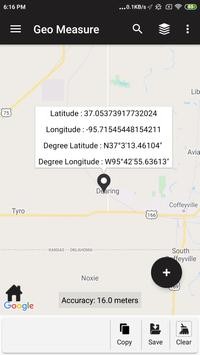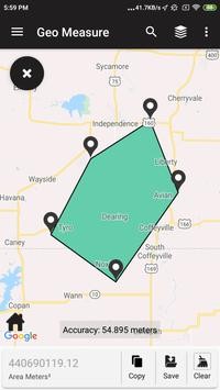 Geo Measure Area Calculator allows you to measure the distance between different points on the map. It is also possible to manually add your own POIs on the map, share them, and use them to find GPS coordinates.